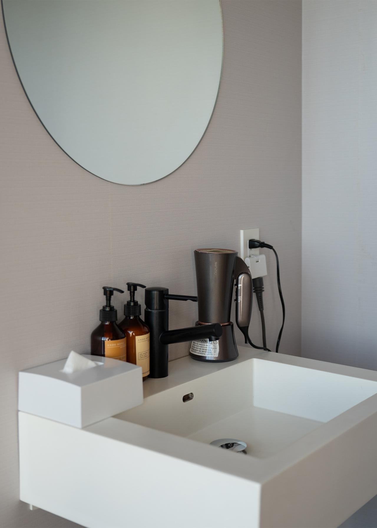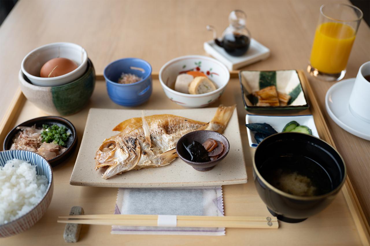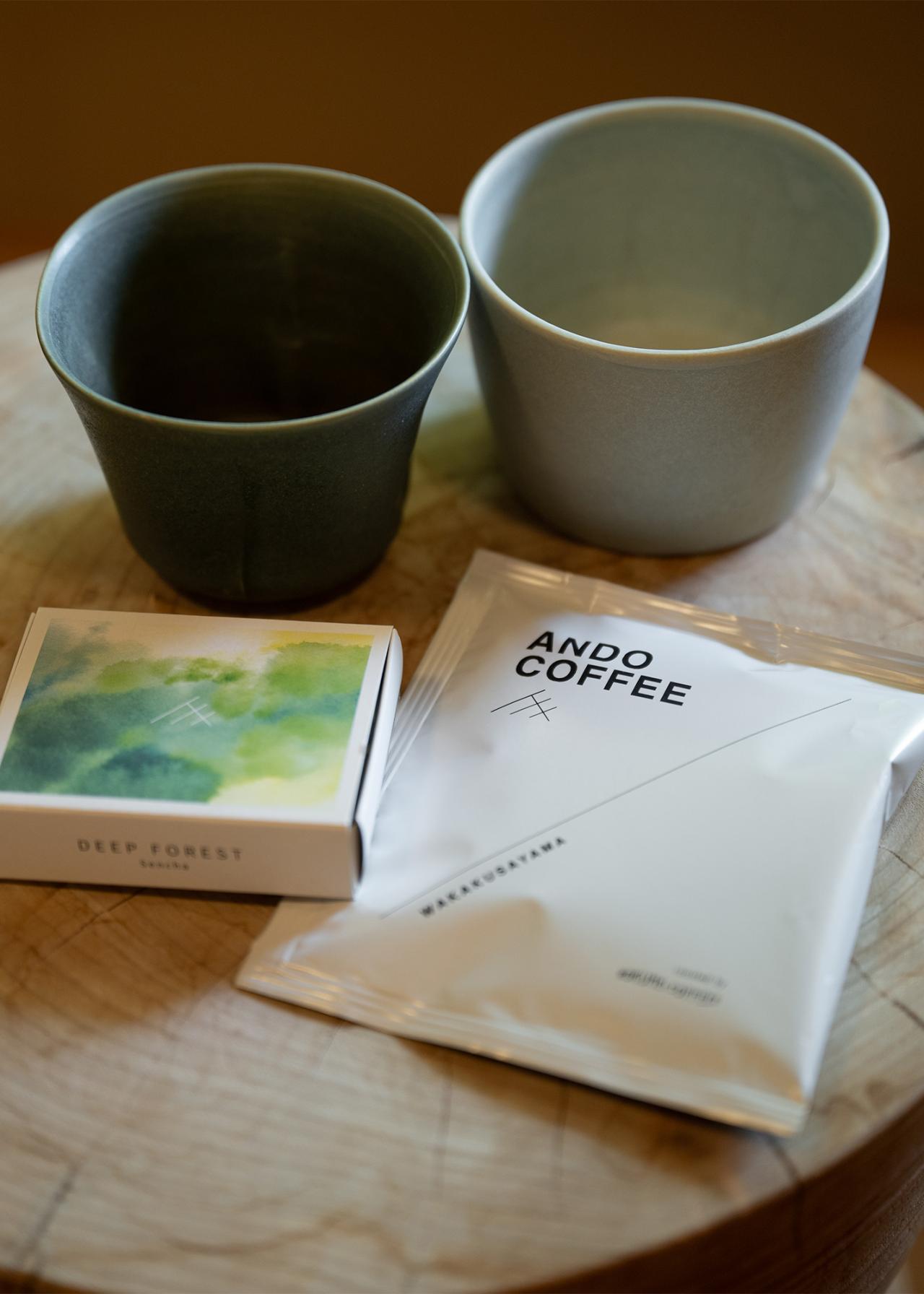 また、奈良出身の作家さんが作られた湯呑みや、奈良県産の茶葉が用意され、自分で丁寧に淹れるお茶の時間も楽しめます。バスアメニティはかわいらしいオリジナルの巾着ポーチに入っているのが印象的で、旅の記念として持ち帰ることができ、滞在への心配りとこだわりを感じました。