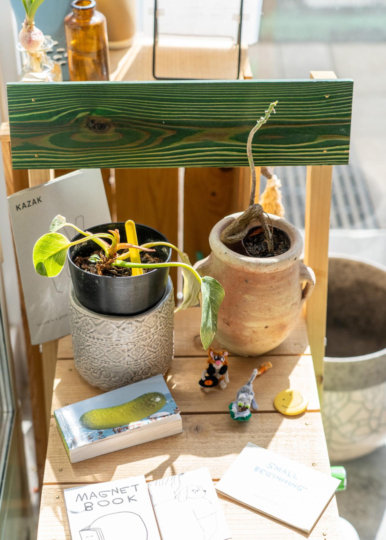 「ギャラリーを始めたのは、もともと興味があったのももちろんですけど、誰でも入りやすいお店にしたかったからです。ドリンクの提供を行っているのも同じ理由で、コーヒーを飲むだけとか、展示品を見るだけとか、好きに利用していただいて構わないと思っています。さまざまな目的を持った人がふらっと立ち寄れる空間でありたいですね。その過程で本に出会っていただけたら嬉しいなと思います」
