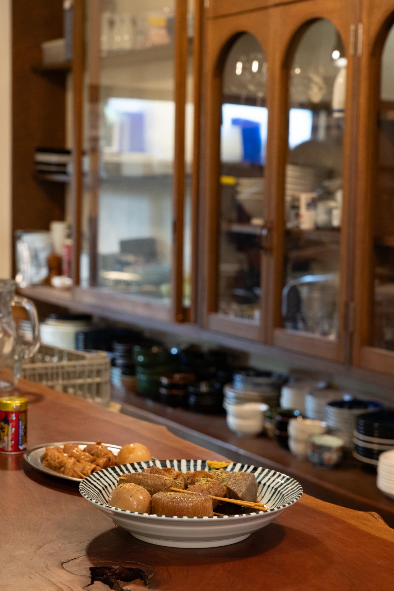 三島駅の南口を降りて目の前に広がる楽寿園を越えていくと、個人経営の小さなお店などが増えていきます。その三島市本町エリアに昼呑みのできるお店がありました。その名も〈どてやま〉。昼から夜まで通しで営業していて、店名の由来にもなっている「どて焼き」や、店主のご出身である静岡市の名物「静岡おでん」が季節を問わず食べられます。