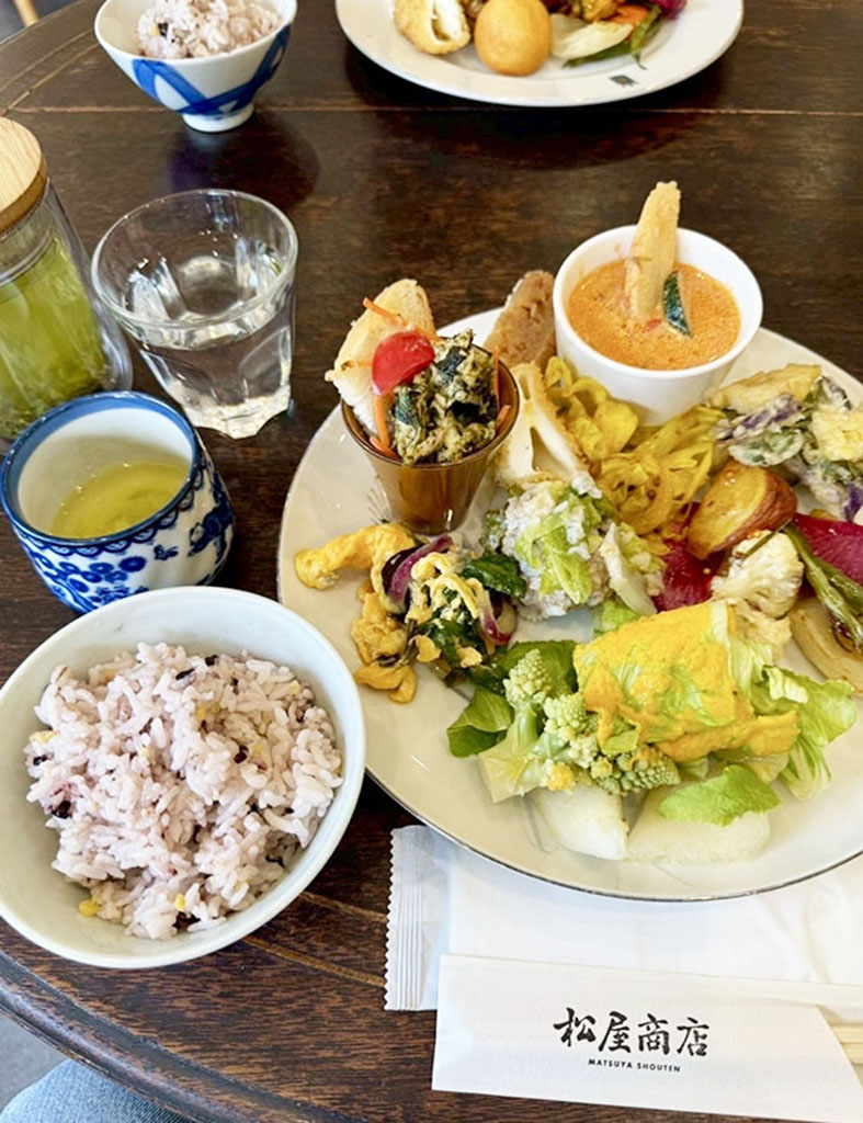 はじめはお惣菜のテイクアウト販売が中心でしたが「ここで食べたい」というお客さまの声に応え、イートインをスタート。旬の地元野菜を活かした手作りのお惣菜は見た目にも美しく、食欲をそそる多国籍なオリジナルメニューが並びます。