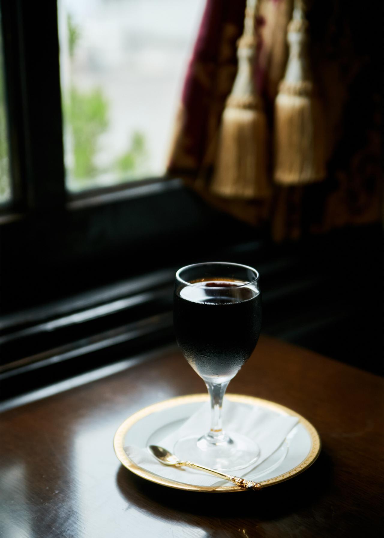 欧蘭陀珈琲(アイスコーヒー)650円。氷が入っていないため味が薄まらないのもうれしい。
