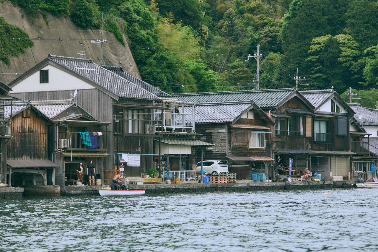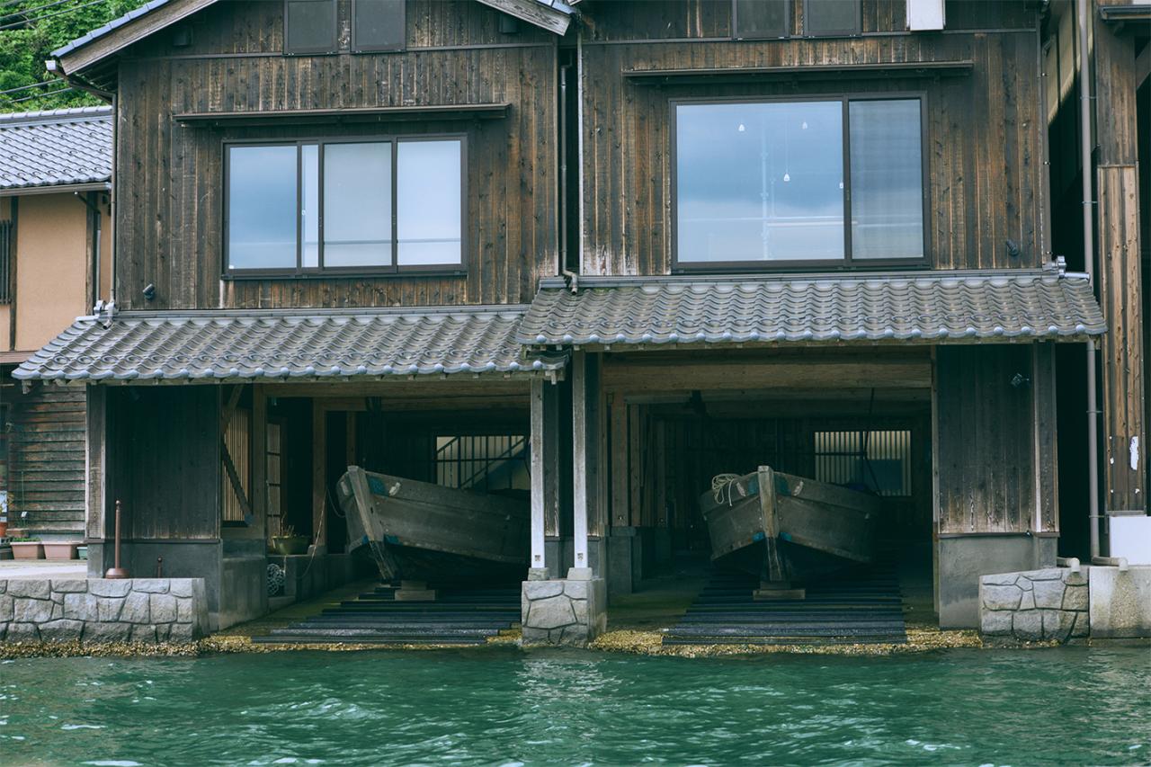 舟屋は、1階は舟のガレージ、2階は居間や客間とする伊根の伝統的建造物。江戸時代中期にはすでに存在していたという。木の舟は天日にさらすと割れ、海につけておけば腐る。そこで、舟を日陰の陸に揚げておけるように家の1階が船着場と作業場になったのが、舟屋の始まりだ。保存されたり、展示しているのではなく、これらの舟屋では今も現地の人が暮らしていて、日常生活を営んでいる。だからこそ、この景色を眺めていると「いろんな暮らしがあるんだなぁ」と心に沁み入るものがある。