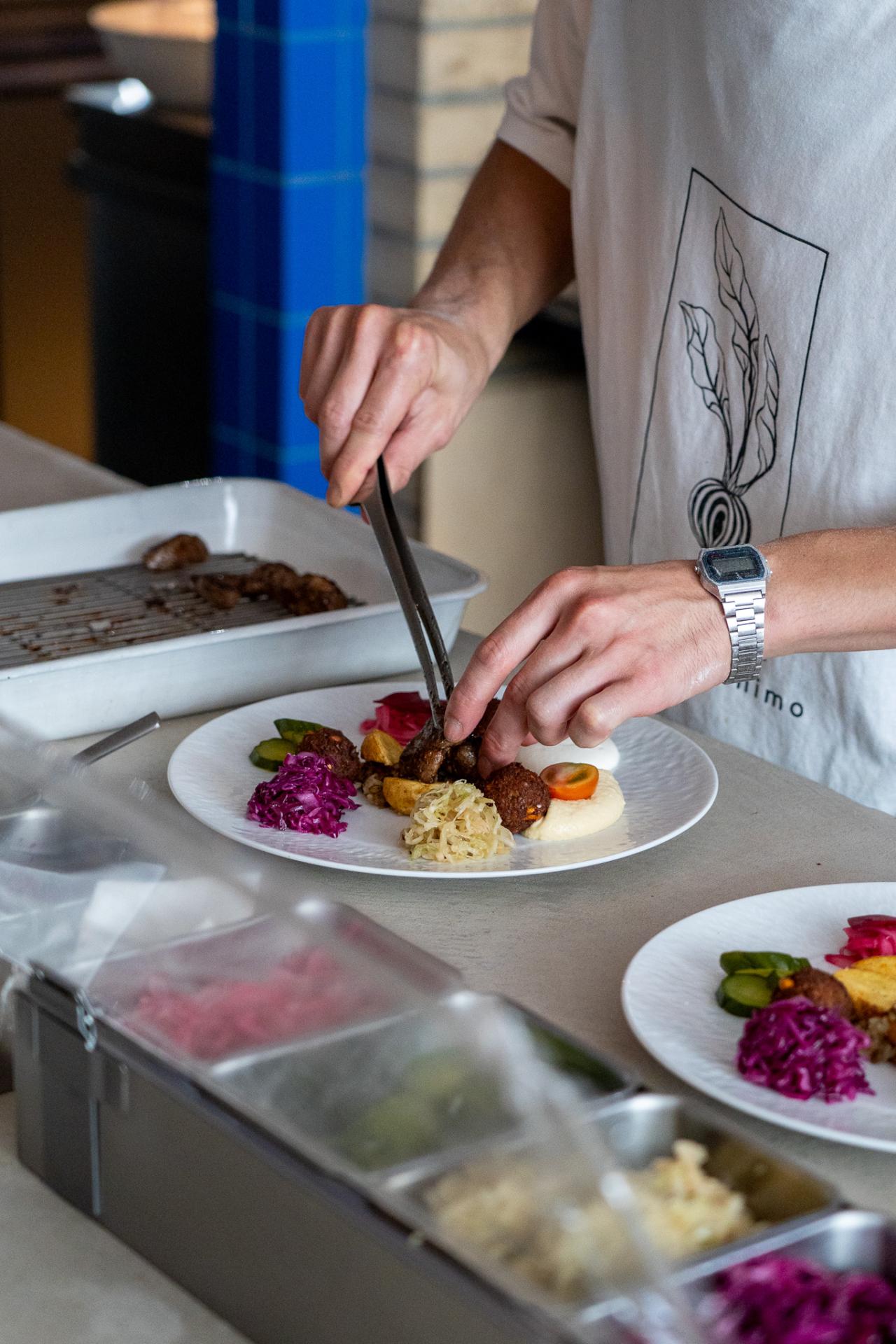 シャワルマはチキンかビーフ、そしてラムの中から選べるのですが、今回はおすすめのラムを注文しました!シェフがカウンターの中で、お皿に色鮮やかな素材を並べていく様子を眺めているのも一興です。
