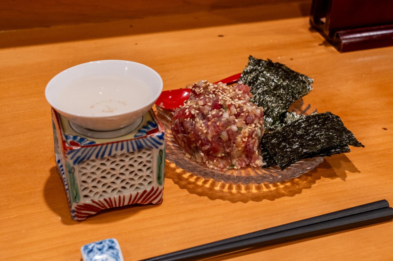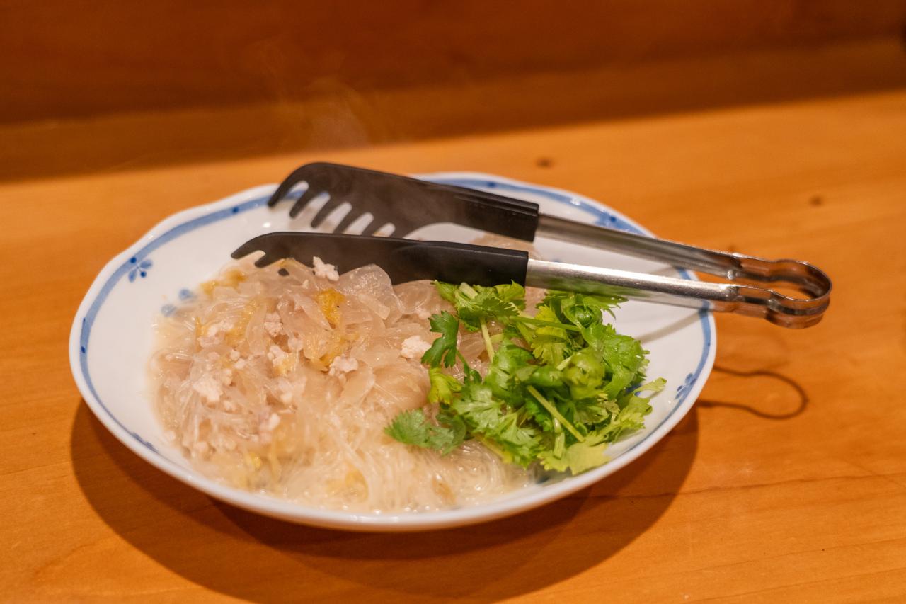 期待を裏切らず、最高のスタートを切りました!香味野菜と辛口純米酒の組み合わせ。そして紹興酒の香りと絶妙に合わさった滋味深いしじみの味わい。すでに口の中が大喜びしています。