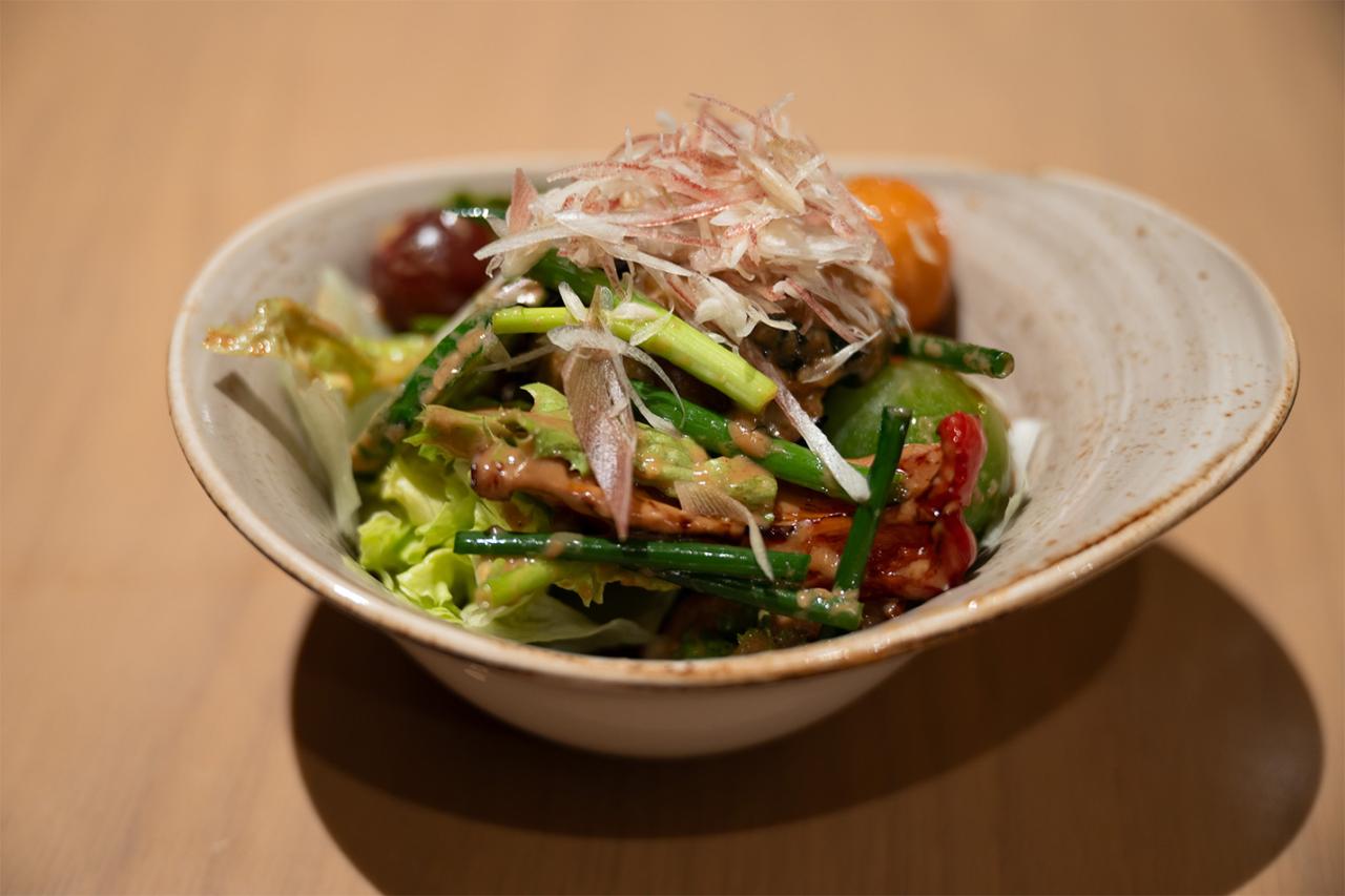 夕食はホテル内レストラン「Indigo Home Kitchen Yamateras(車山照)」でいただきました。お目当ては、1日10食限定という「犬山茶パスタ」。犬山産のお茶を練り込んだ生パスタで、ひと口食べるとお茶の香りがふわっと広がり、心地よい渋みが食欲をそそります。クリームソースとの相性もよく、ここでしか味わえない特別な一皿です。