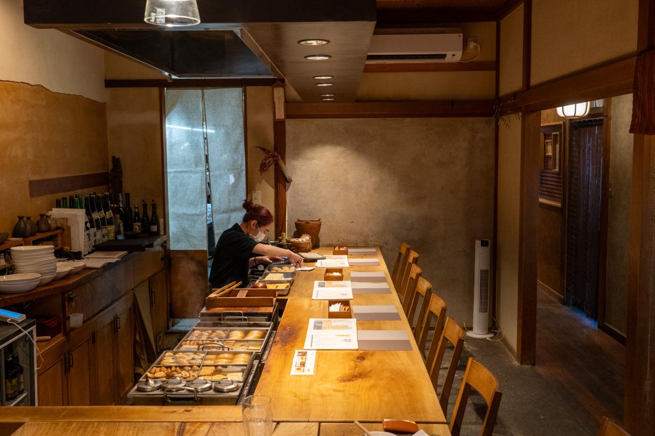 小田原駅から15分ほど歩き、かつて魚市場があったことで賑わったといわれる「小田原かまぼこ通り」に入っていくと、住宅の中に素敵な店構えが目に入ります。