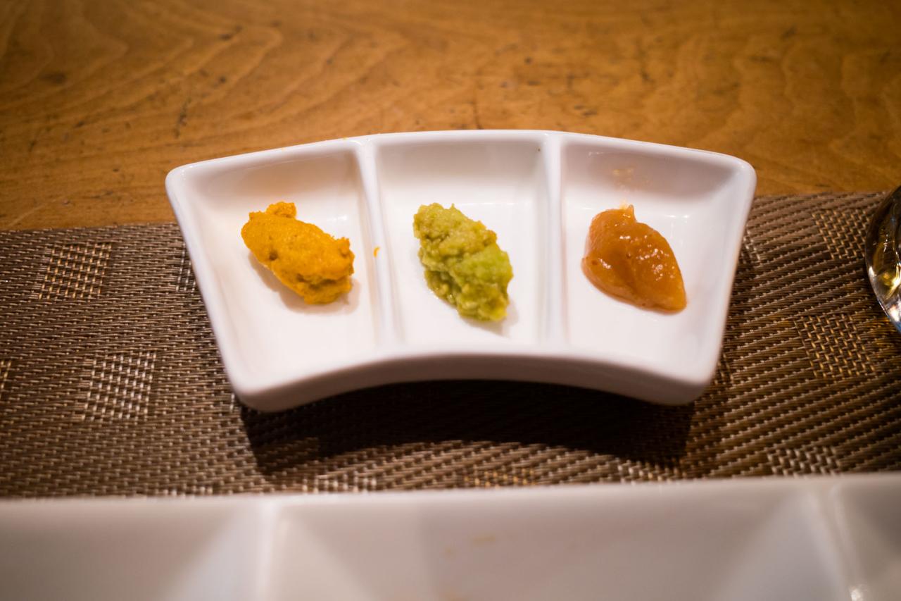 特選おでんは、熟成された美味しいところだけを集めた出汁が使われているそうで、本当に深みのある味です。「丹沢山」のコントラストが最高です。そして次回は日本酒の出汁割りも試してみたい…と妄想が膨らみます。さらに驚くのが薬味。定番の辛子、そして山葵と続き、梅味噌と3種類並びます。梅味噌!初めての体験でです。「さんまのつくね」などの練り物と合わせると、今までにない爽やかな味わい…。シミシミの大根にもよく合います。家おでんの時にも用意したい!と思えるほどでした。