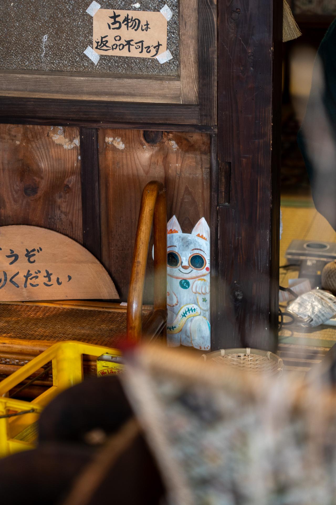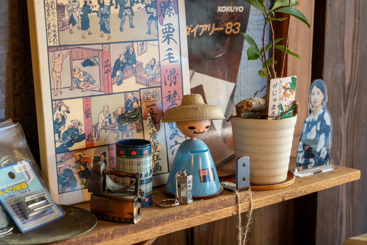 旅先で気になる場所があったら覗いて見るのが一番!ということで足を向けてみると、窓越しにレトロな雑貨や家具などがうかがえます。こちらはわれら編集部の大好物、古道具屋さんでは…!となると引き戻す理由はありません。