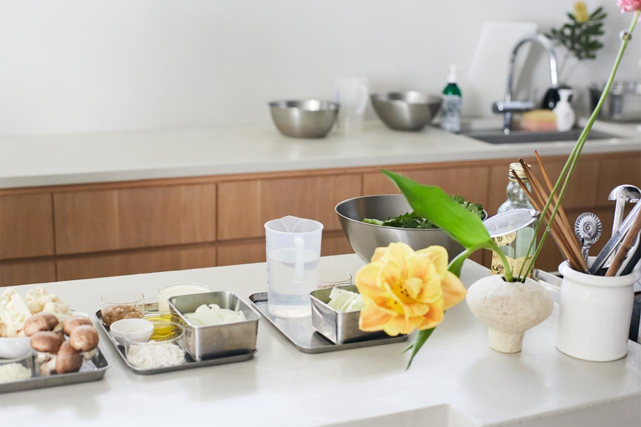 〈檸檬とラクダ〉の料理教室は、味噌や柚子胡椒をはじめとした調味料作りが体験できるレッスンや、旬のお野菜と発酵調味料を使った料理を教わるレッスンなど、季節ごとに内容が変わる。今回教わるテーマは「コンソメ麹」。コンソメ麹の作り方から使い方まで、たっぷり教えていただく。