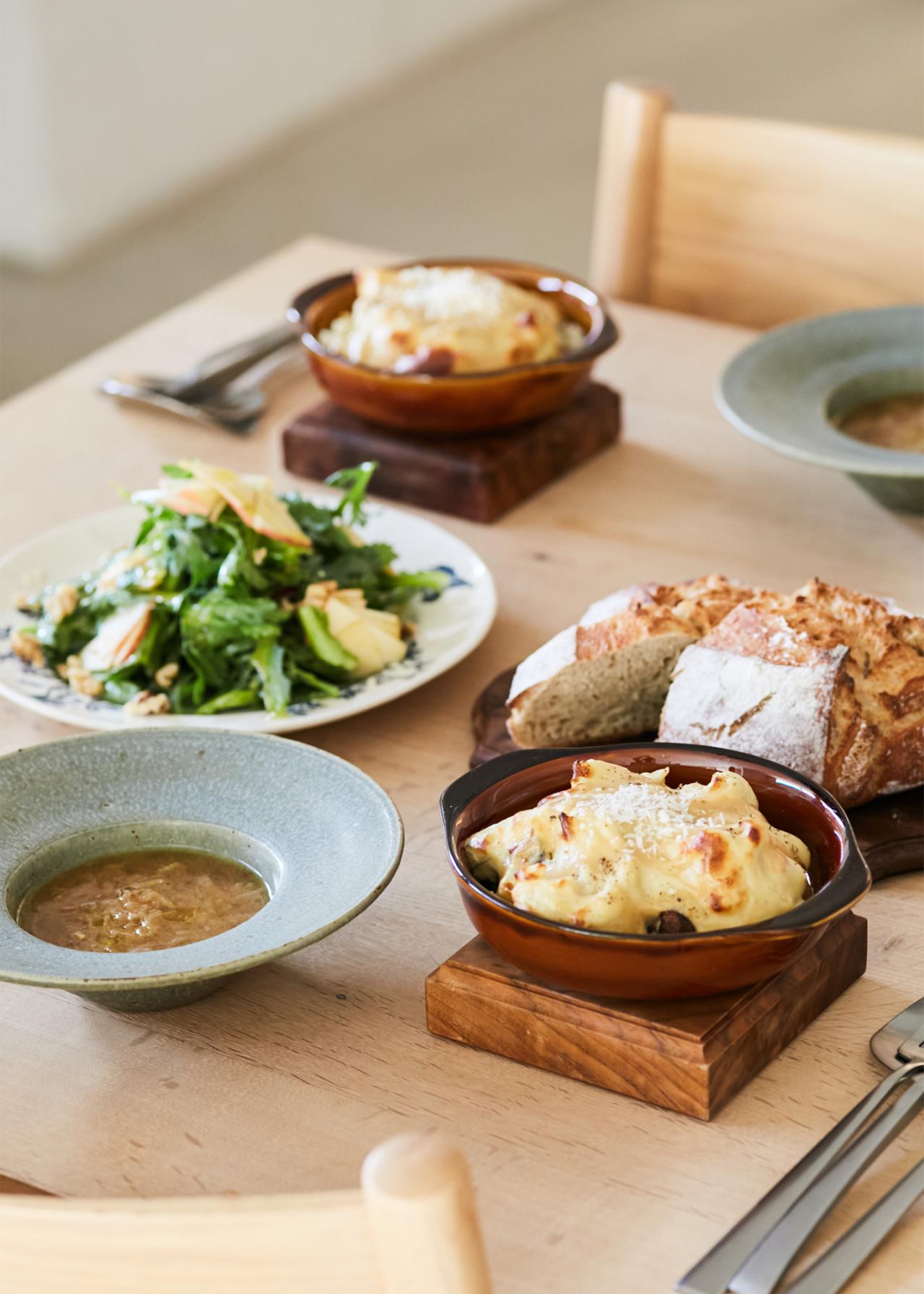 兼子さんお気に入りの作家さんの器によそって。〈檸檬とラクダ〉では器の展示会なども行っている(不定期開催)。