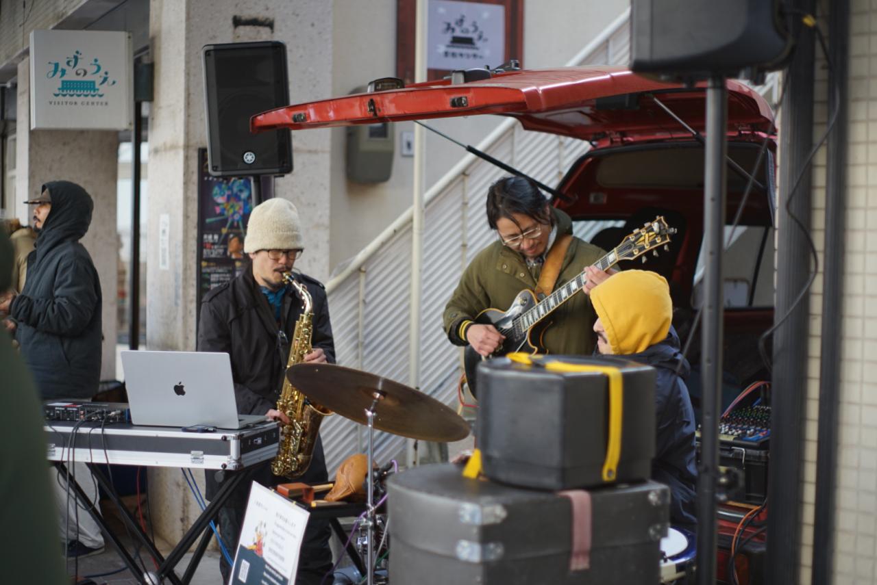 アーケード下には、飲食店や雑貨屋、コーヒー屋など、実にさまざまなお店が出店しています。年々参加店舗が増え、今では〈水上ビル〉の既存店だけでなく、県内外からさまざまなお店が集まっているのだとか。