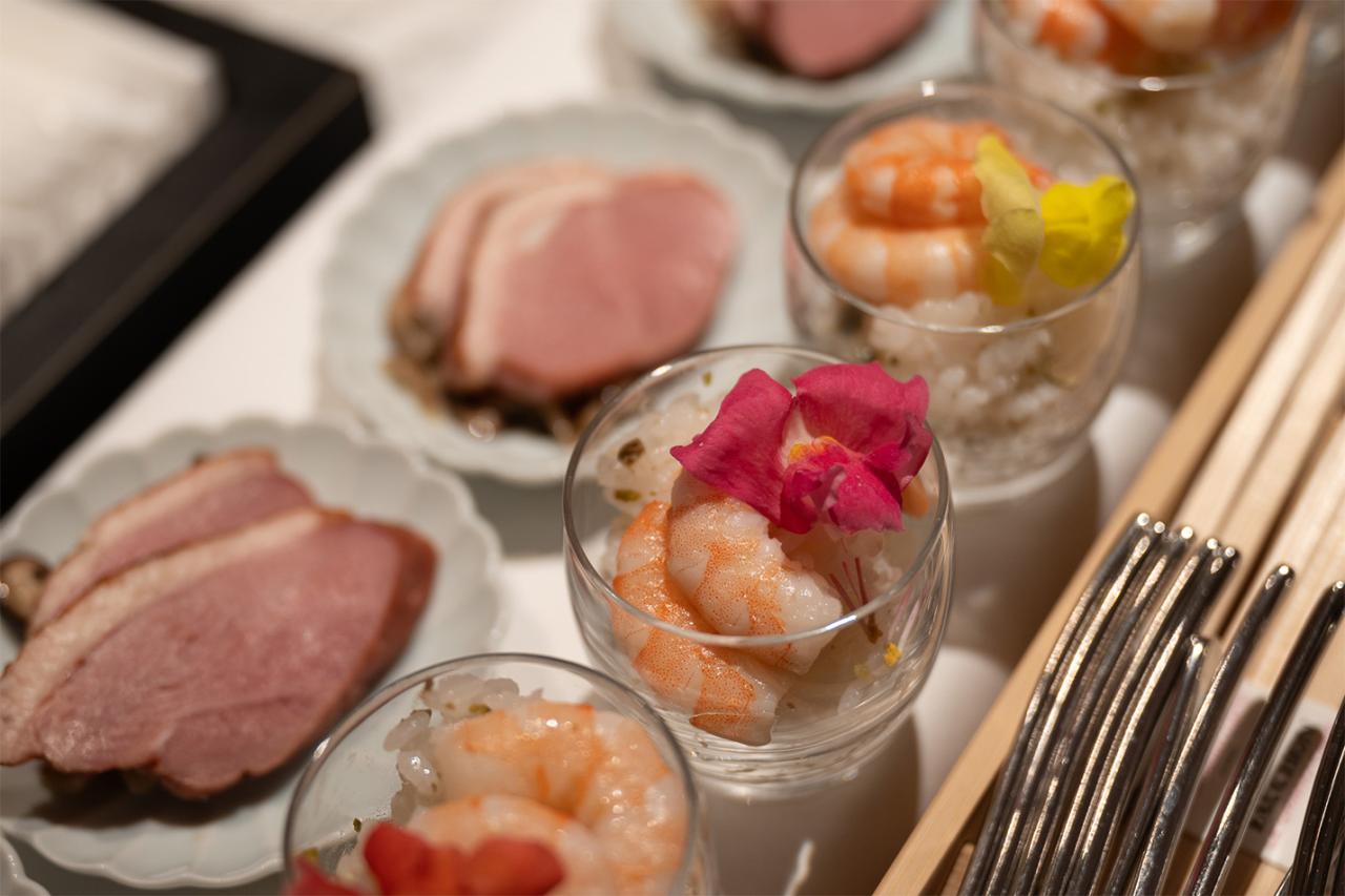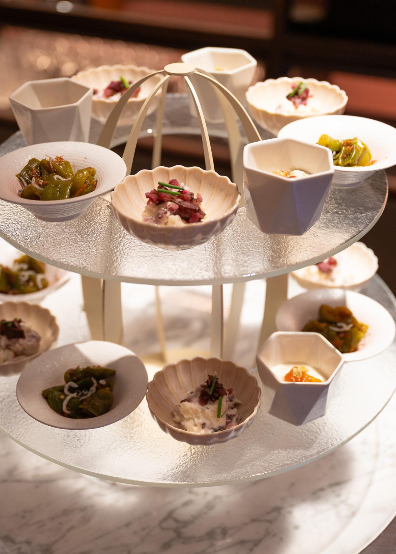 夕方からは2Fにある「フォションラウンジ」へ。17:00からのイブニングカクテルタイムは、まさに「グルメホテル」の本気を感じる贅沢な時間です。フォションシャンパンのロゼを片手に、シェフ特製の軽食やスイーツを楽しみました。京都の「おばんざい」とフレンチのエッセンスが融合したお料理はどれもおいしく、ゆっくりと贅沢な時間を過ごしました。