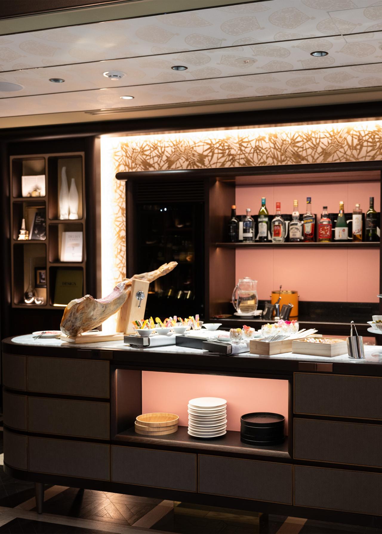 フォションラウンジでの、シャンパンと軽食が彩る優雅なひととき
