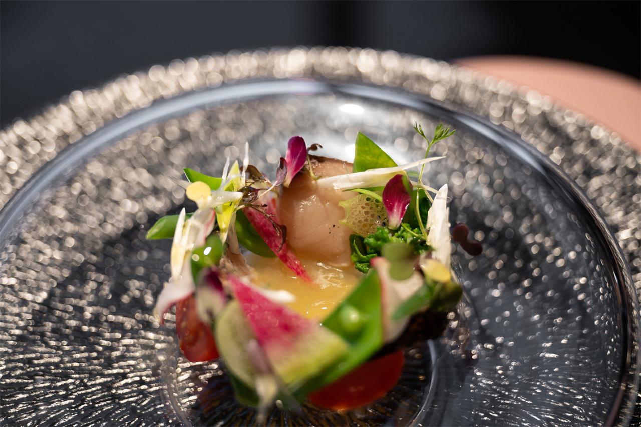 夜はメインダイニングにて、世界を驚かせたフレンチを。こちらの料理を手掛けるのは、フランスの国際料理コンクールで優勝に輝いたことがある実力派、林啓一郎シェフです。