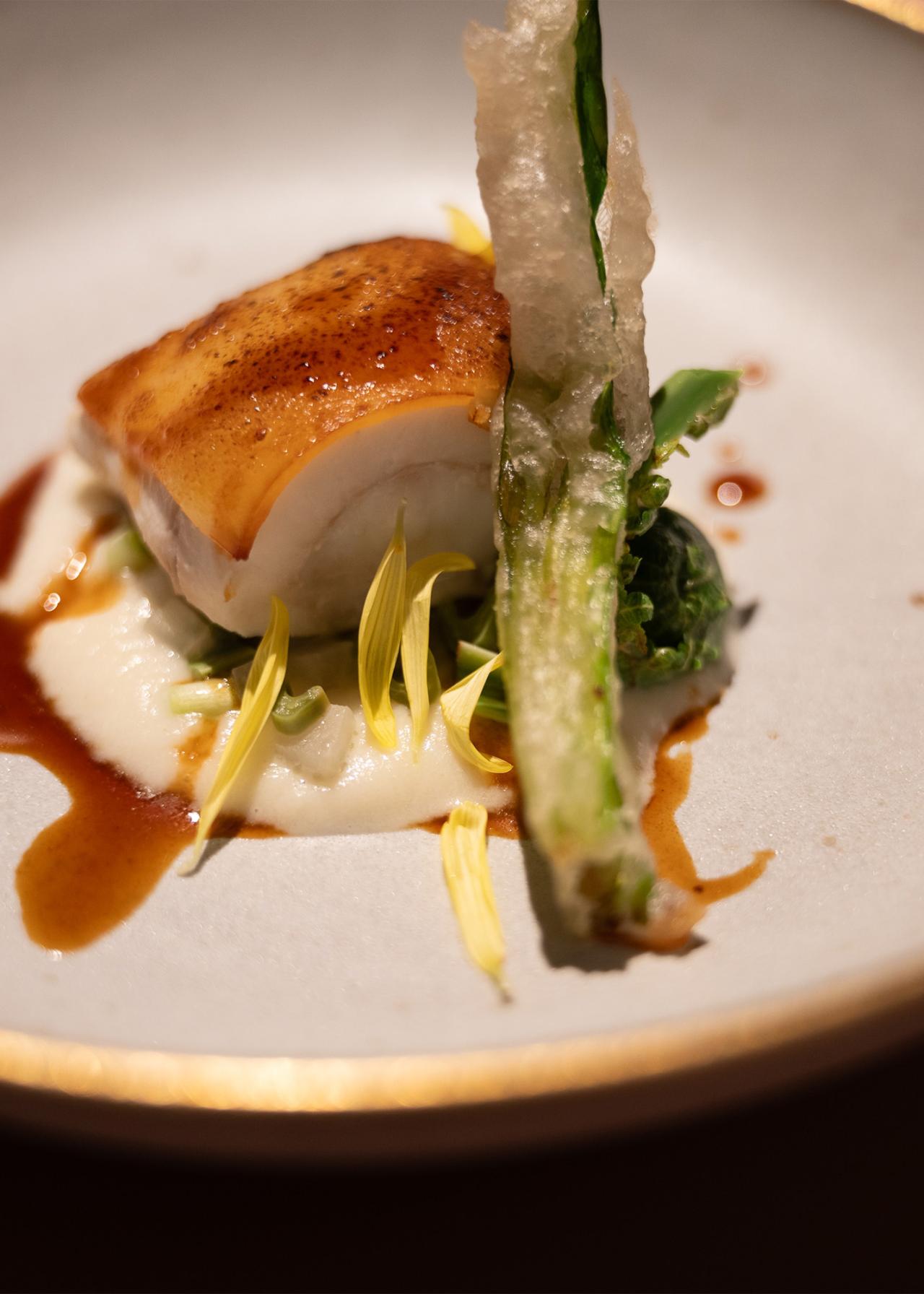 いただいたのは、白味噌、酒粕、そして白ワインで丁寧にマリネされた焼き鮭。ふっくらとした身から溢れる旨みと、西京焼きをフォション流に昇華させたような品のある味わいに、思わず笑みがこぼれます。