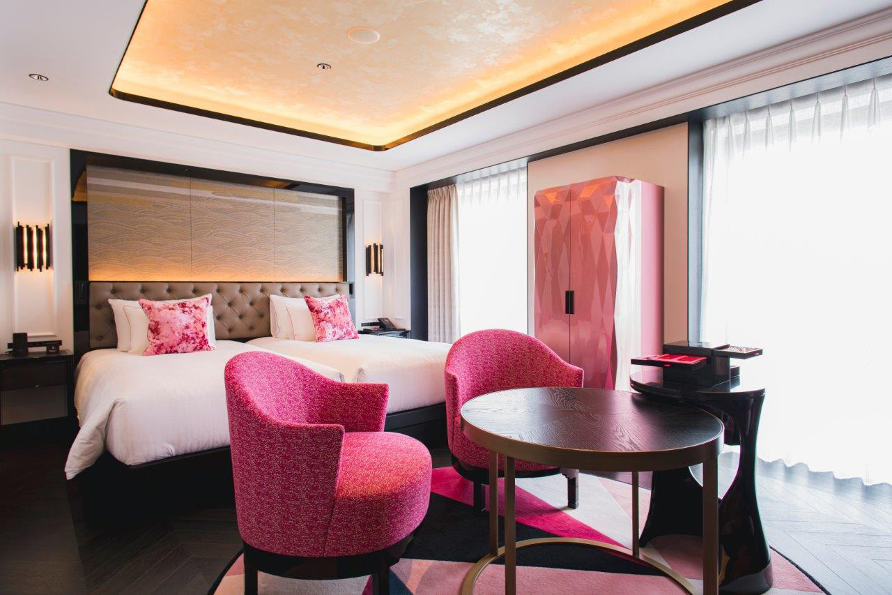 パリの美食ブランド「フォション」の世界観をそのままに、日本初上陸として誕生した〈フォションホテル京都〉。ホテルに一歩踏み入れると、アイコンカラーのピンクとモダンなデザインが融合した、華やかな空間に目を奪われます。京都の伝統とフランスの美意識が交差する、まさに「美食の館」で過ごす贅沢なホテルステイをレポートします。