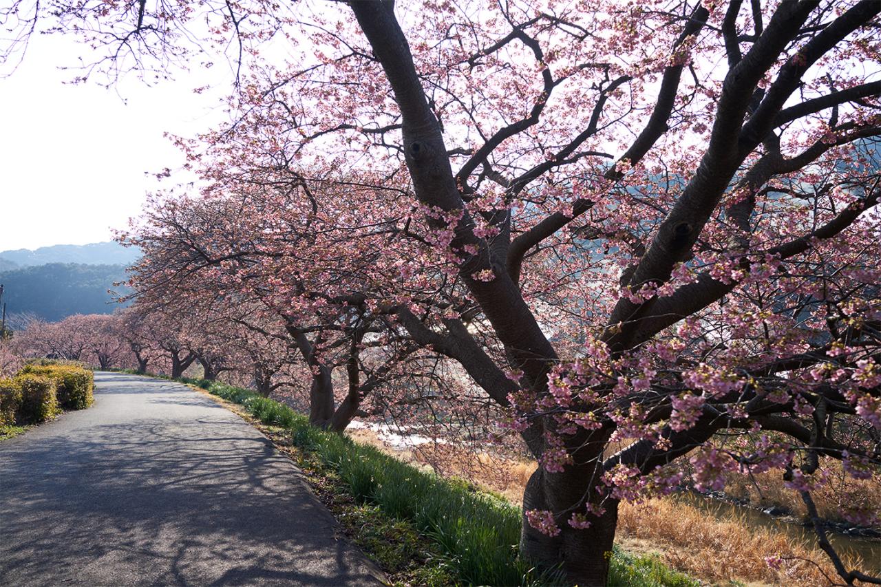 ※写真は2026年に撮影したものです。下賀茂温泉でも有名な青野川の両岸には、約4.2kmにわたって約800本の河津桜が植えられていて、例年2月上旬から3月上旬にかけて見頃を迎えるそうです。
