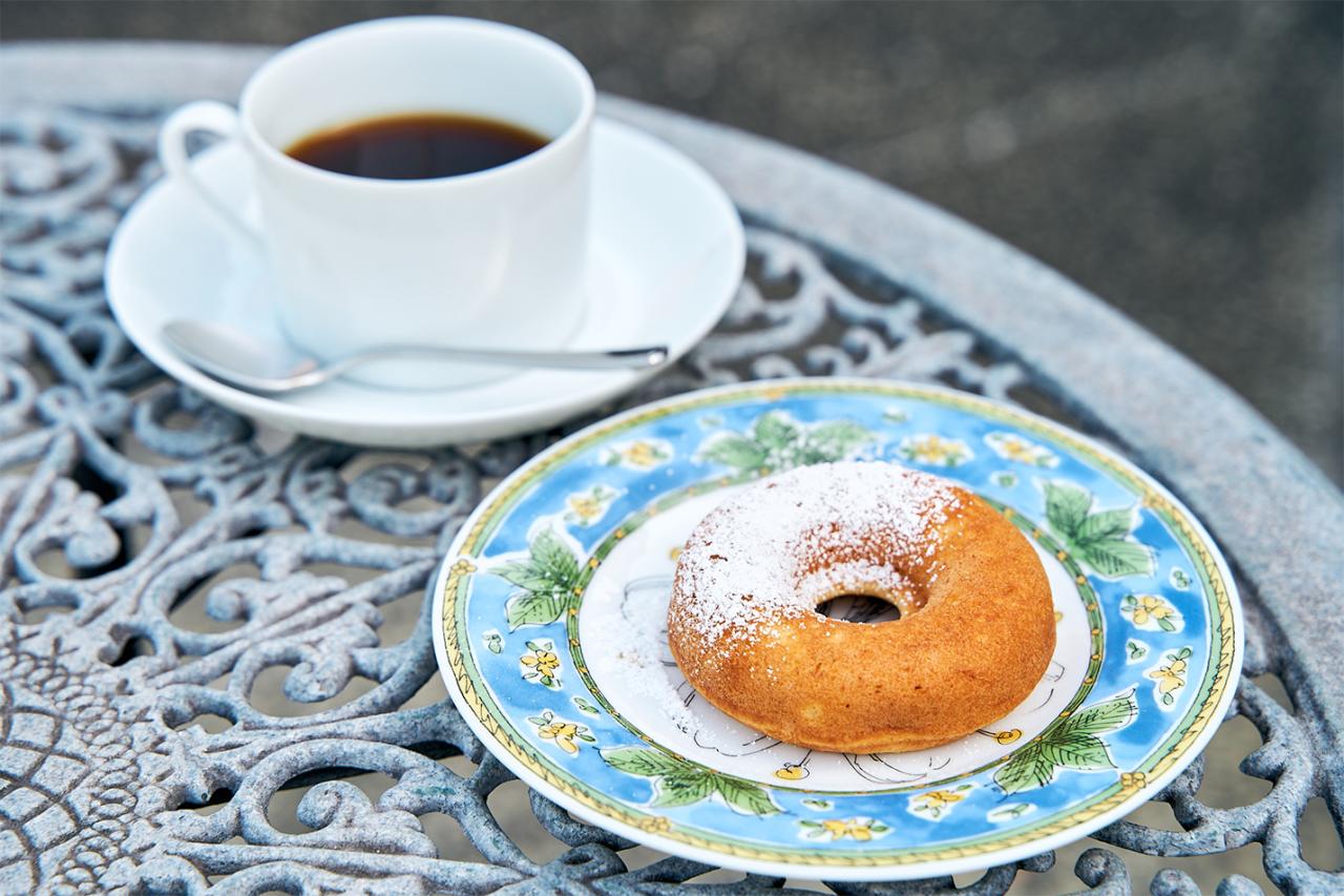 その公園に面したテラス席で、風を感じながらのコーヒーブレイクも気持ちいい。コーヒーは、岡崎市にある〈自家焙煎珈琲豆専門店 樹の香〉にオーダーしているという、すっきりとしたオリジナルブレンドだ。合わせたいのは、「なごやか牧場」の焼きドーナツ。名古屋農業センターのミルクを使っていて、ほんのりとした甘みのある優しい味だ。素朴なドーナツも、「NARUMI」のプレートに乗せられてかわいらしい。