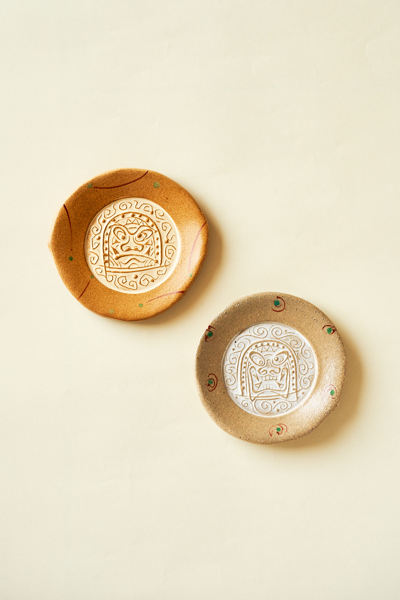 町には、瓦職人以外の陶芸家も多いという。高浜生まれの作家、森克徳さんがその一人だ。三州瓦の「いぶし」技法を取り込んだ作品でも知られている。鬼瓦が描かれた小皿は、森さんが活動する〈古郷庵〉から。ナチュラルな色合いで、使い勝手が良さそう。お茶菓子を乗せるにはぴったりだし、絵画のように飾っておくのもよし。