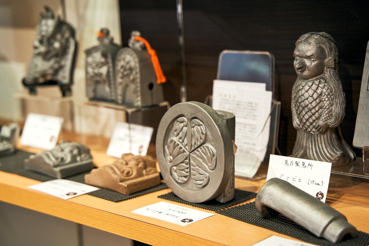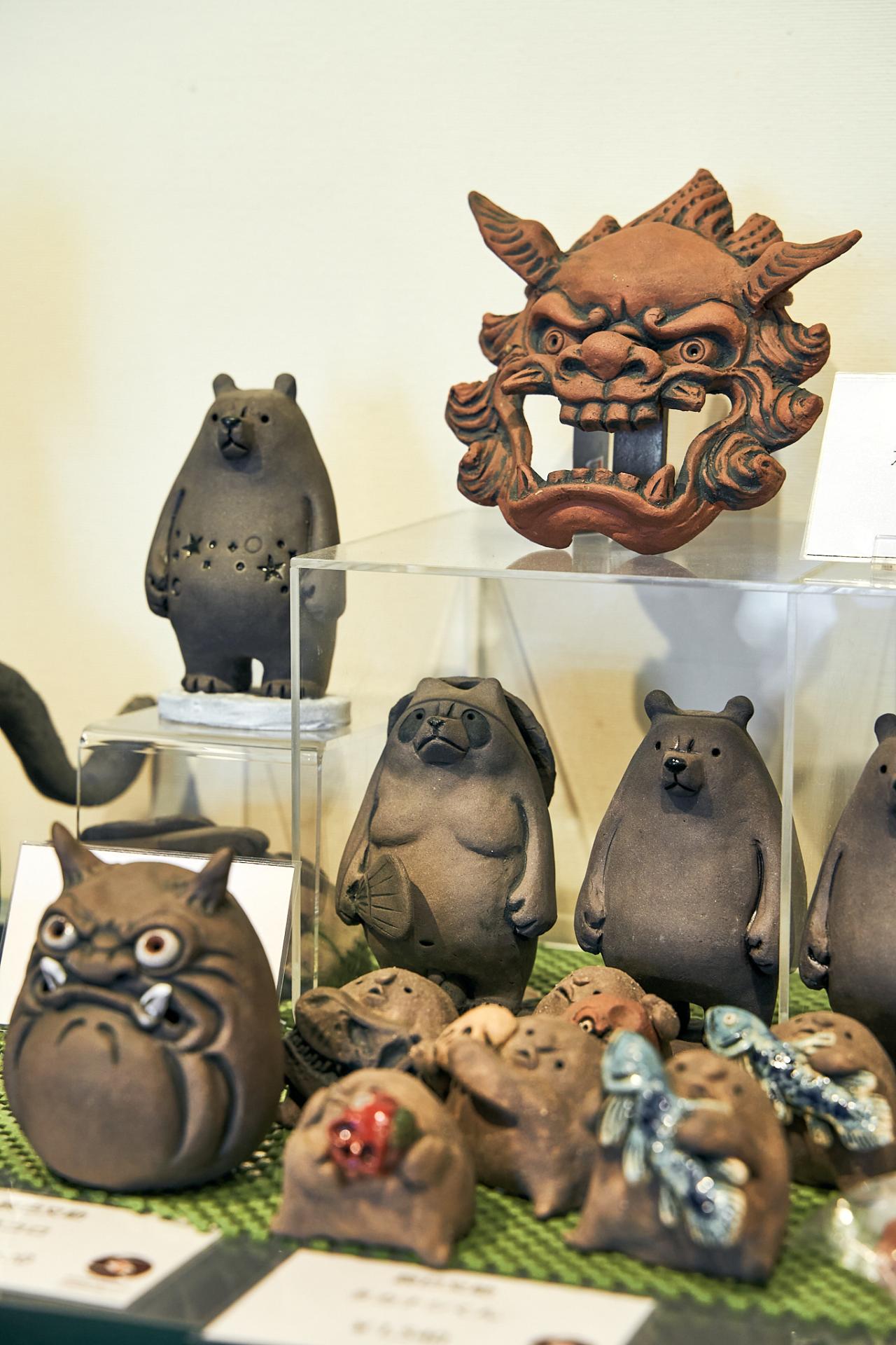 手作業で鬼瓦を作る職人は「鬼師(おにし)」と呼ばれ、瓦職人の中でも特別な存在。国内でも80人ほどしかいないと言われ、特に高浜には人数が多いという。〈高浜市やきものの里 かわら美術館〉のミュージアムショップでも、さまざまな職人の作品を見ることができる。迫力のある鬼面も、小さな箸置きになればどこか愛らしい。寝そべった姿がかわいい猫のタイプも並んでいた。