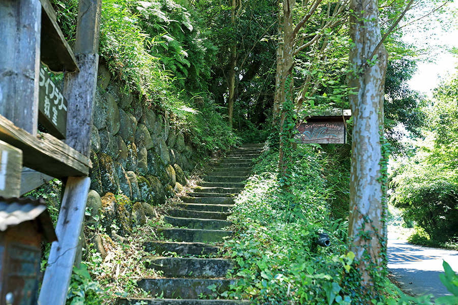 静岡県を代表する景勝地・日本平。富士山や駿河湾などが眺められる見晴らしのよさを生かし、展望施設の日本平夢テラスや静岡市立日本平動物園など多くの観光名所があるエリアだ。今回訪れるのは、そんな日本平の一画にあるドライフラワー専門店〈ドライフラワーギャラリー ダーワ〉。JR静岡駅から車を走らせること25分、日本平さくら通りの途中に、小高い場所に建てられた一軒家があった。自然いっぱいの美しい風景は、まるで絵本の世界のよう。今日はこちらでドライフラワーのリースづくりに挑戦する。