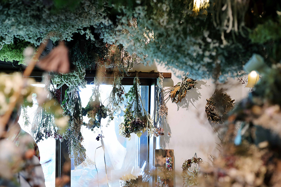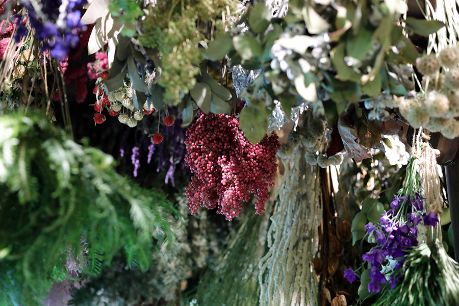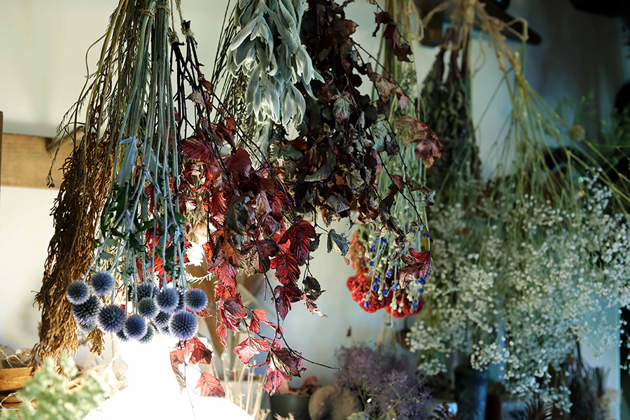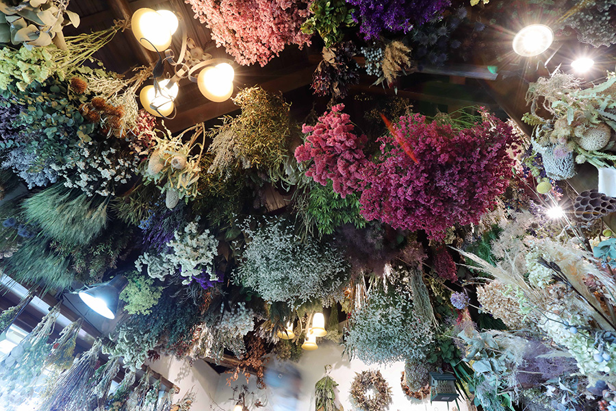 季節ごとに100種以上のドライフラワーがお出迎え。