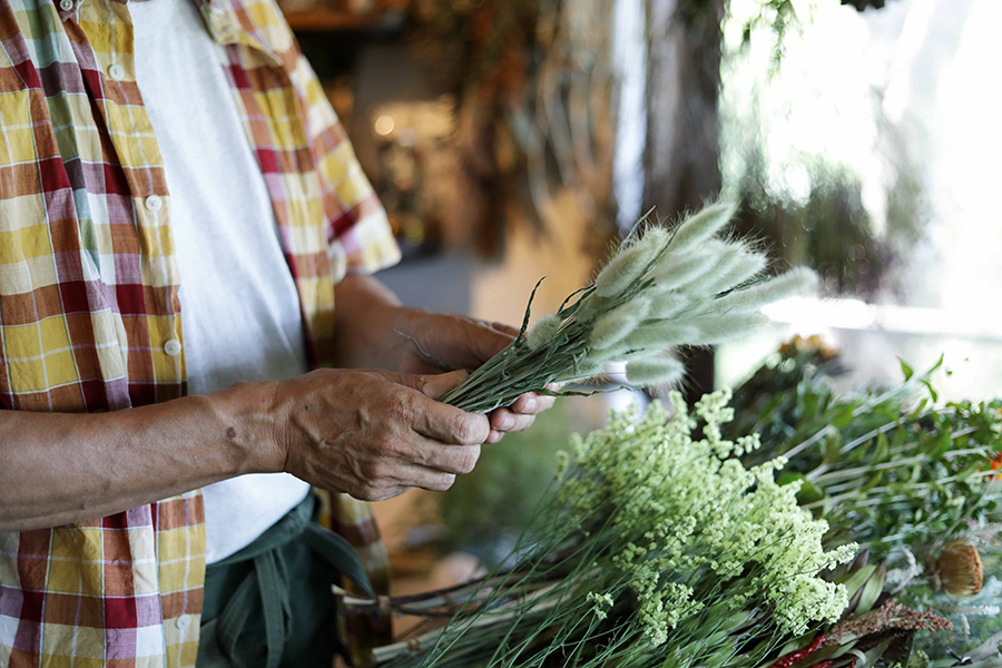 試行錯誤の連続に、ドライフラワーづくりの楽しさがある。
