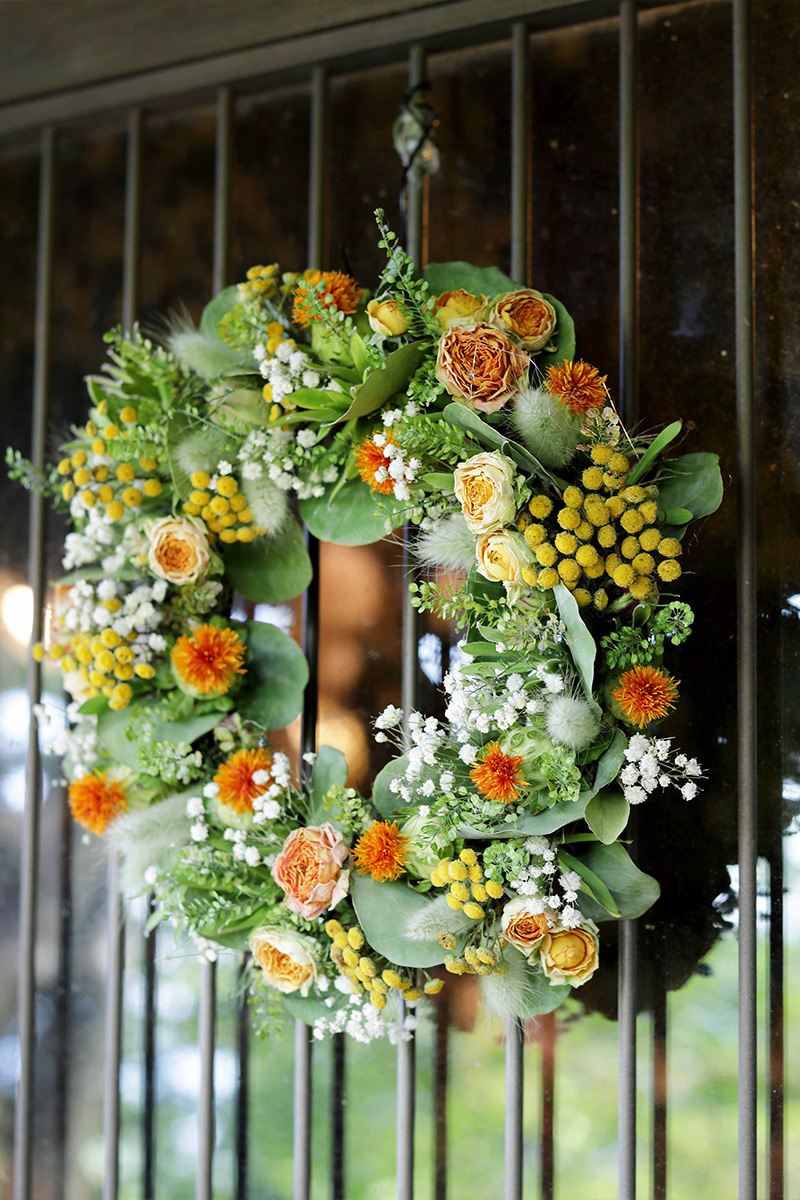 和田さん作のリースやスワッグ。