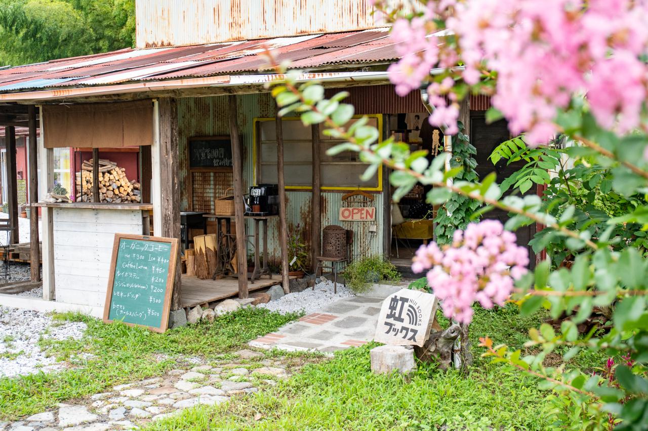 富士山の西麓、朝霧高原に位置する富士宮市。キャンプ場や源頼朝にゆかりのある「陣馬の滝」など、豊かな自然に恵まれた猪之頭地区に、築60年以上の納屋を改装した〈虹ブックス〉がある。店主の古屋淳二さんが夫婦で営む読書室だ。自身の出版社〈虹霓社(コウゲイシャ)〉から1文字とり、本屋ではないが本がある場所だとわかるように〈虹ブックス〉と名付けた。