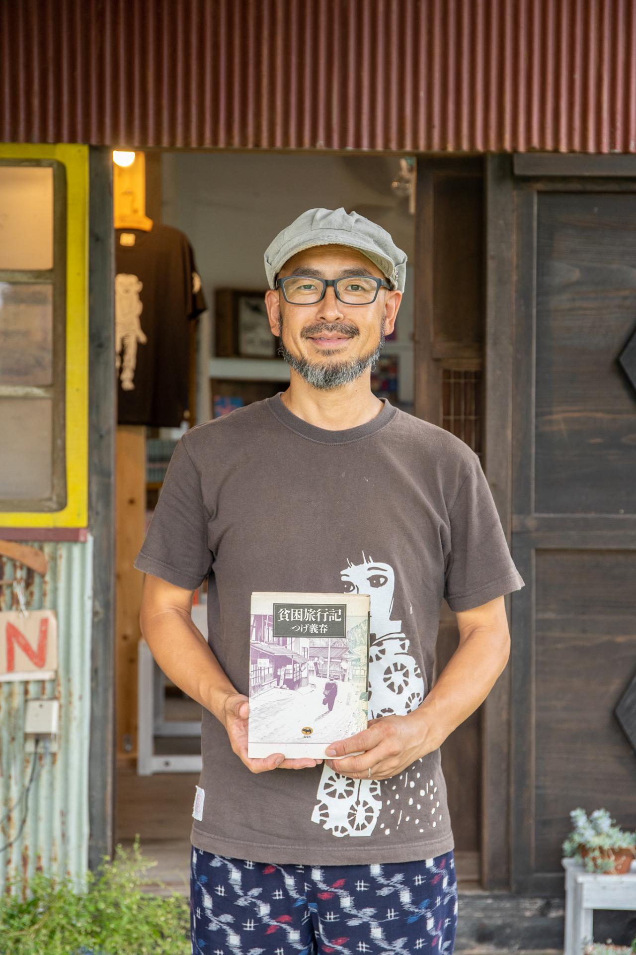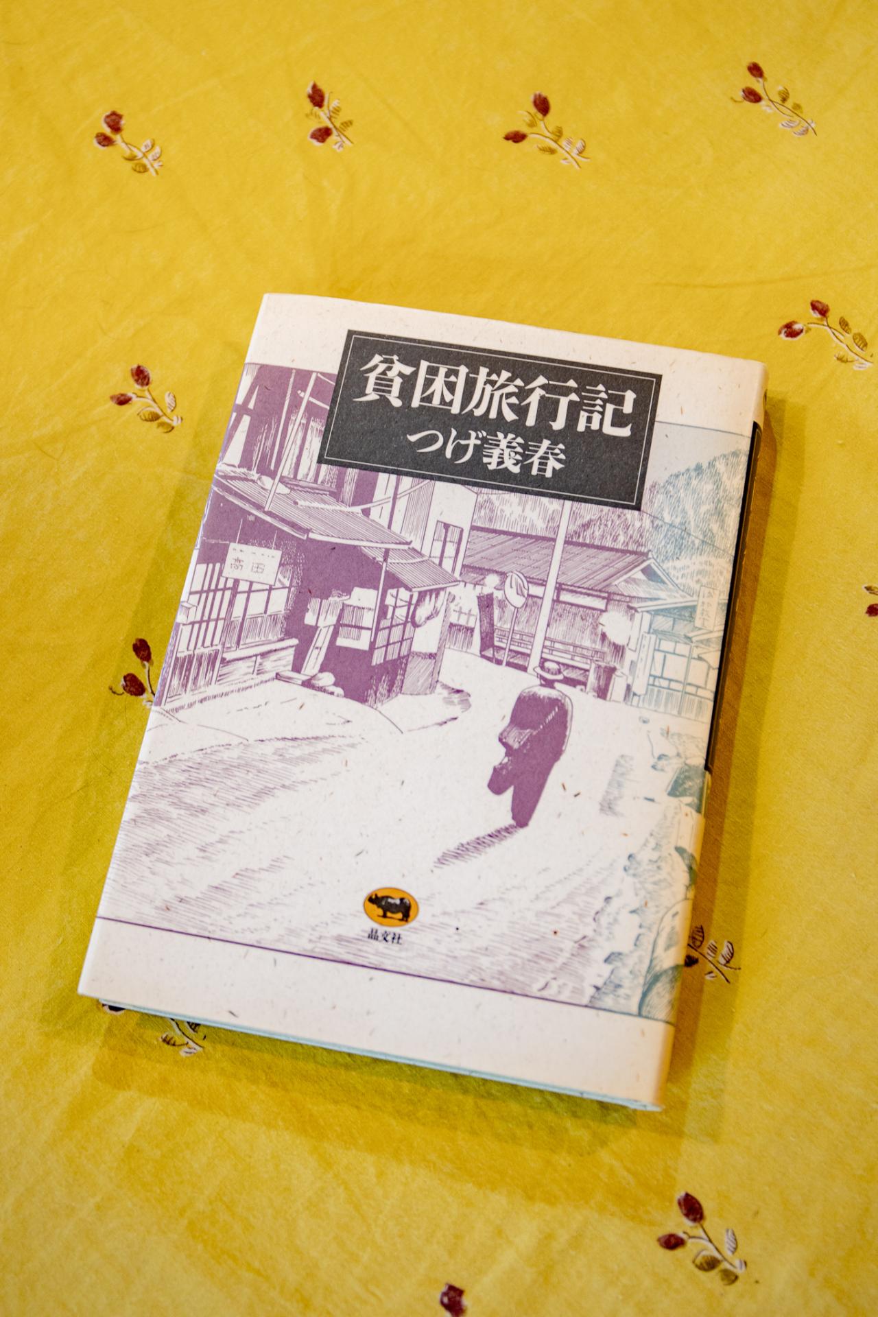 「偏りがある」という蔵書の中から選んでくれたのは、つげ義春さんの紀行エッセイ集「貧困旅行記」。「つげ義春という作家の魅力のひとつに、存在の危うさみたいなところがあると思うんです。どこか俗世間からの逃避願望を抱えたような旅で、秘境めいた、あまり人が行かない場所に行くんです。その描写がとてもおもしろい。変な旅館に行ったエピソード、親子の旅のエピソードが好きです。1990年代の作品なので、今は存在しない場所もあると思います。だから今読むとリアルとフィクションが混ざり合った感じがして味わい深いです。地図も書いてあるので、行こうと思えば行けちゃいます。旅に出る前にはぴったりですね」。