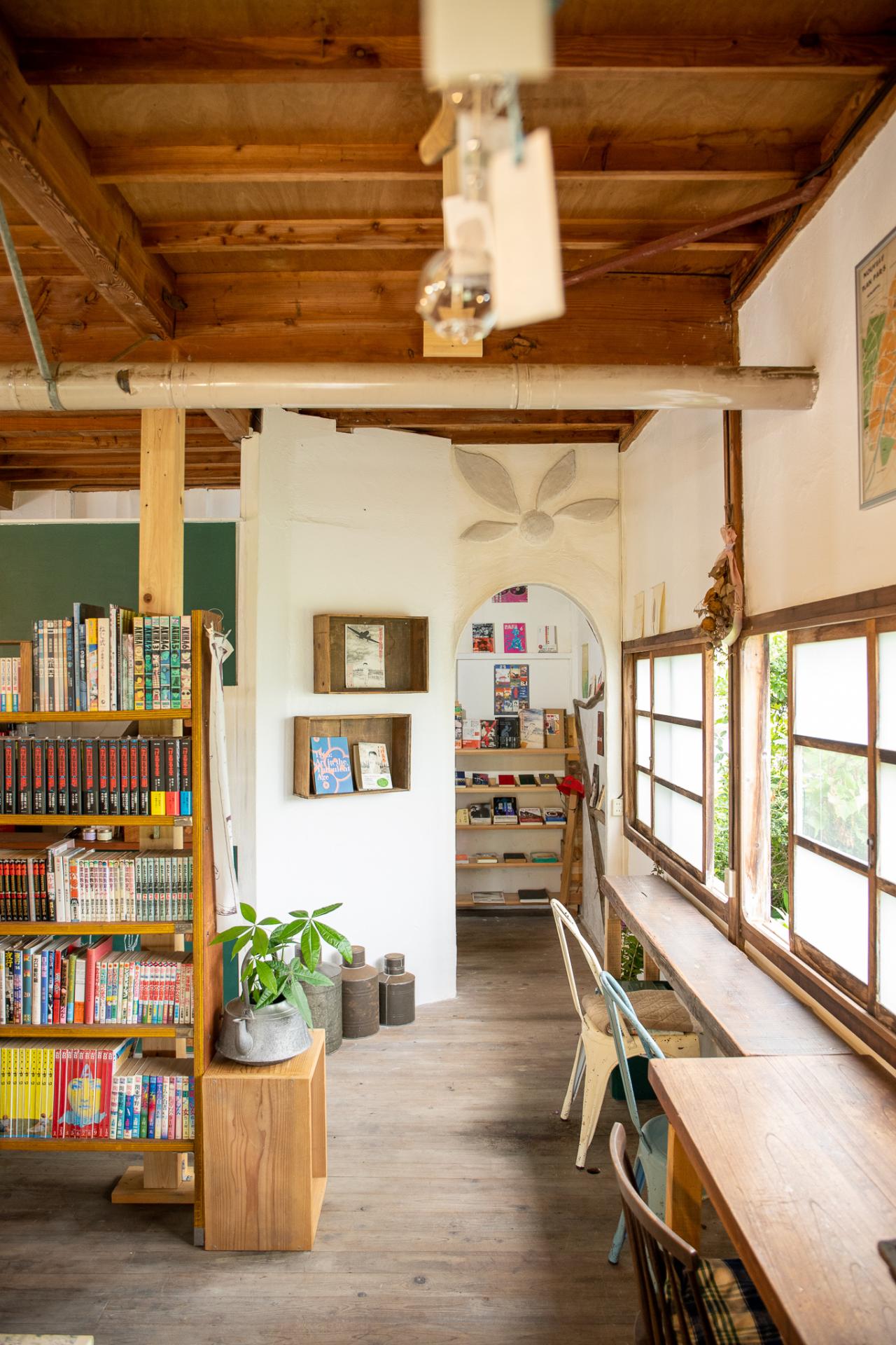 〈虹ブックス〉の営業は、週3日。営利活動ではなく、文化運動だと古屋さんは言う。「本っておもしろいじゃないですか。こういうおもしろい本があるよと伝えたいし、知ってほしい。どちらかというと公立図書館や一般的な本屋さんでは見かけない本をそろえていて、そういう本と出会える場、違う世界を知るきっかけの場にしたかったんです」。蔵書は、アート、思想、文学、サブカル、漫画などさまざま。中でも農的生活や移住など田舎暮らしに関する本が最近は人気だという。