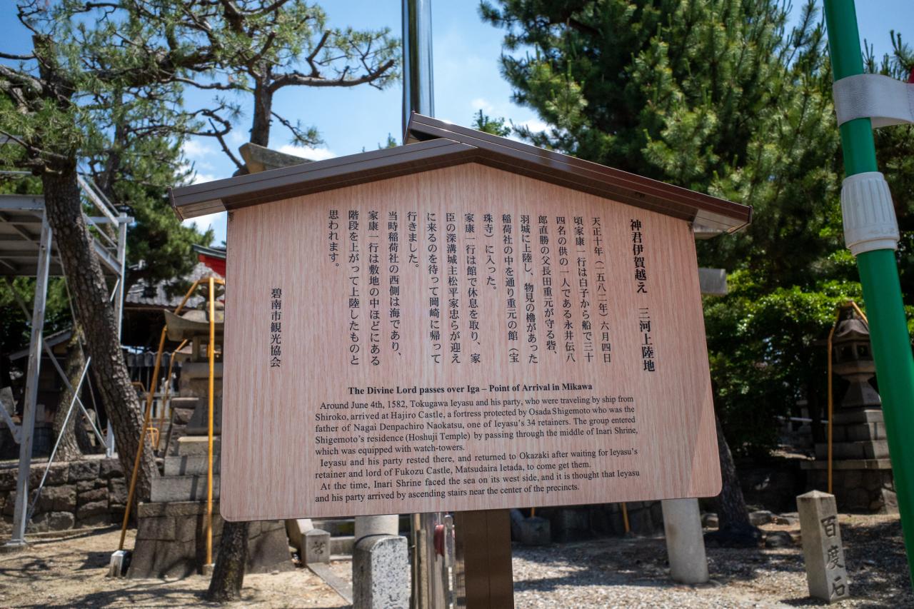 こちらの大浜稲荷社の西側は当時海だったそうです。上陸した時はさぞホッと胸を撫で下ろしたのではないかと妄想やロマンが止まりません。歴史好きな私にとっては毛穴が開く思いでした。