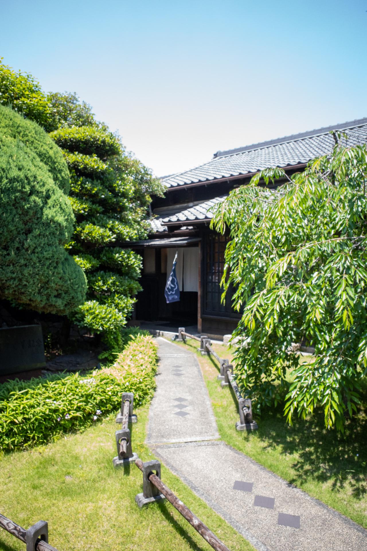 こちらは敷地内には築200年の古民家を改築した「K庵」というレストラン&カフェと、物販店舗「石川八郎治商店」があります。生憎「K庵」は予約いっぱいでランチをいただくことは叶いませんでしたが、「石川八郎治商店」でみりんの試飲をさせていただきました。アルコール度数も高く、まるで上質なお酒をいただいている気分でした。新米仕込みと泡盛仕込みの本みりんとで風味も違い、とても新鮮な体験をさせていただきました。