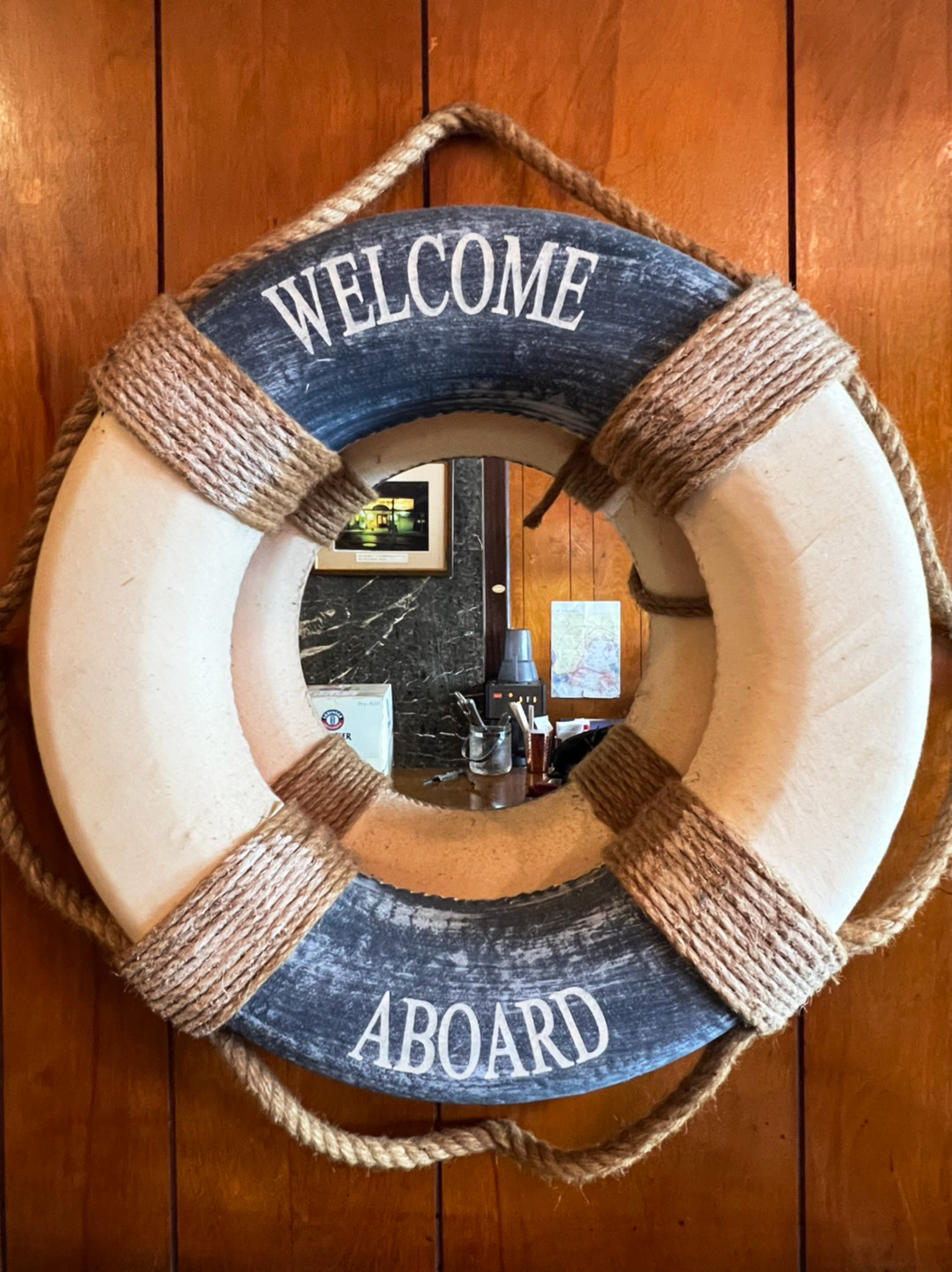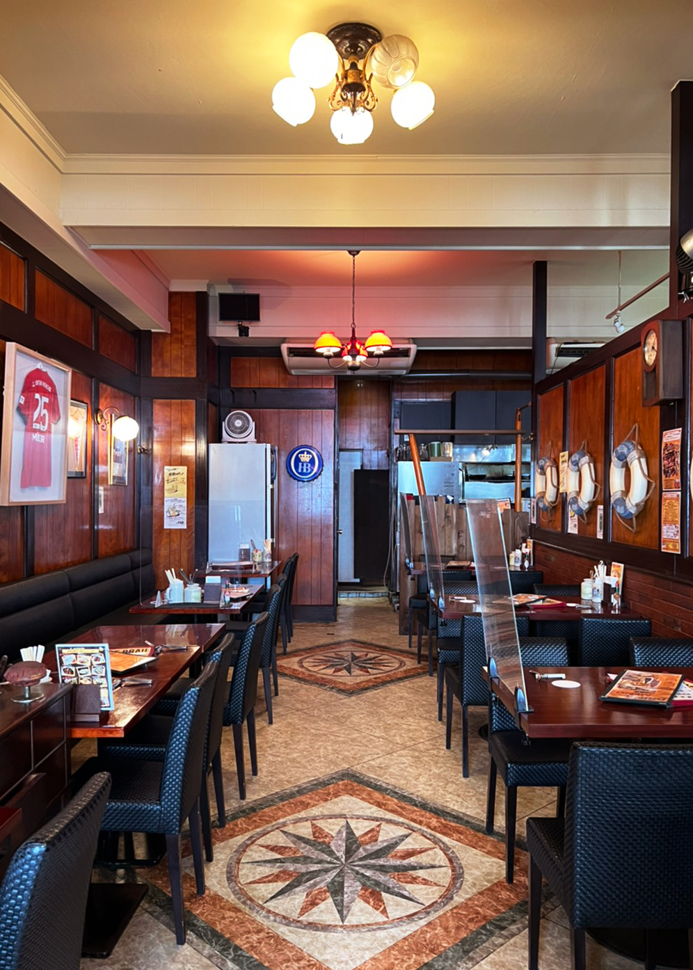 重厚感のある扉を開いて、いざ店内へ。船の模型や浮き輪など、港町らしいモチーフが至るところに飾られており、異国情緒を感じます。中には、創業当時からずっと受け継がれてきた調度品も多いのだそう。