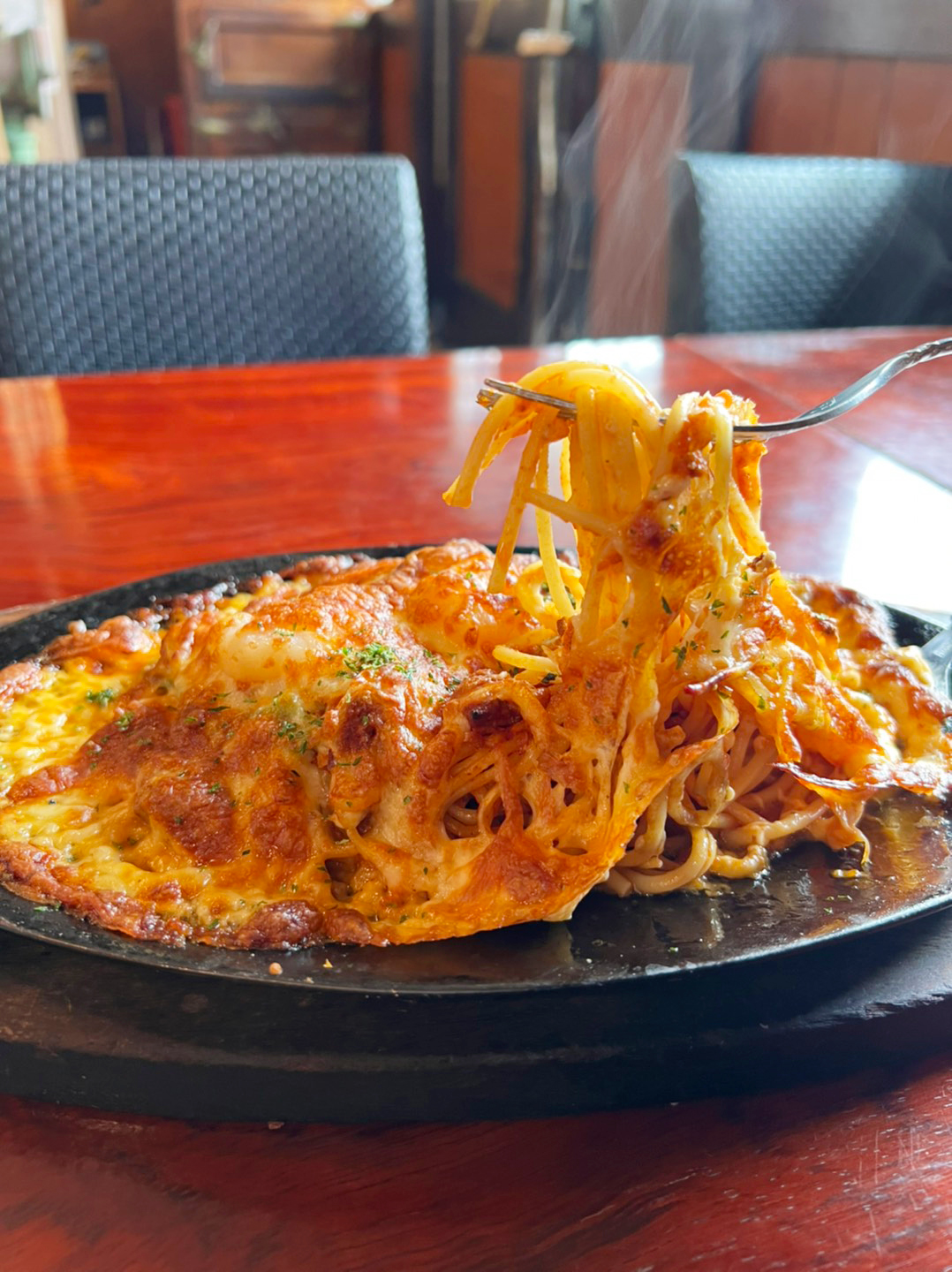あつあつのスパゲティにとろけるチーズ、名物「スパピザ」は誰もが好きな味。