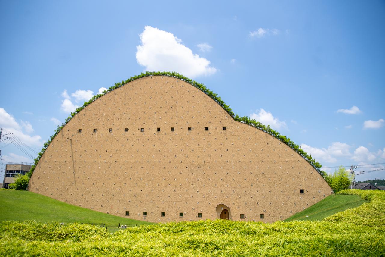 そして、スタッフの方から特徴的な外観の秘密を教えていただきました!設計は、世界的にも有名な建築家の藤森照信氏によるものですが、タイルの原料を掘り出す「粘土山」をインスピレーションにして作られたそうです。まさに陶芸の町・多治見のシンボルですね!